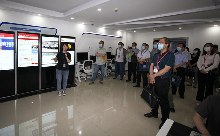 在多媒体数字演示厅,培训班学员详细了解了公司网络架构、重点项目建设等整体情况,观看了“秦岭云”、“雪亮工程”和省、市、县三级融媒体平台业务演示,并对融媒体业务的服务模式、平台特点以及“起点新闻”、“闪视频”、“爱系列”等应用情况与工作人员进行了深入交流,对公司在信息化建设及网络安全保障方面所做的工作表示赞许。