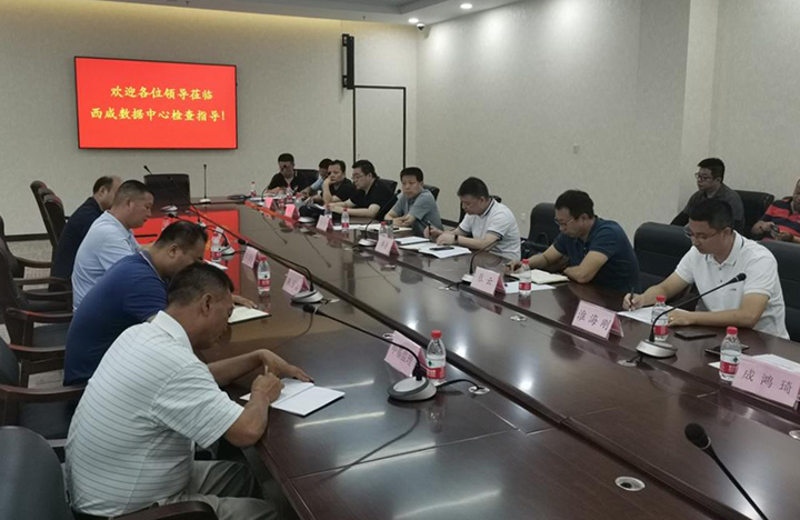7月13日上午,公司总经理韩普、副总经理张云、总经理助理李文一行到西咸IDC数据中心检查指导中心项目建设运营工作。