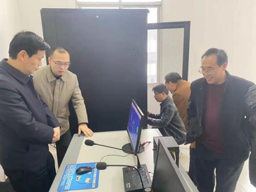单子孝一行在南郑支公司应急广播平台机房进行了实地检查,对支公司高质量完成的建设工作给予高度评价。