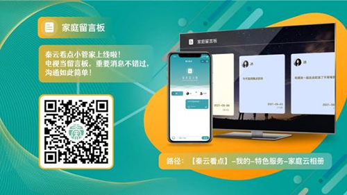 为进一步落实“一切为了用户”企业理念,公司市场与产品创新部不断探索开发“秦云看点”服务功能,近期又推出了两大全新功能——家庭留言板和家庭云相册。
