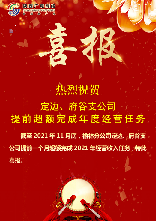 喜报——定边、府谷支公司提前超额完成年度经营任务