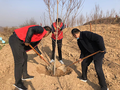 潼关支公司积极投身包联村的植树绿化活动中,帮助留翎村栽植苗木300余株。