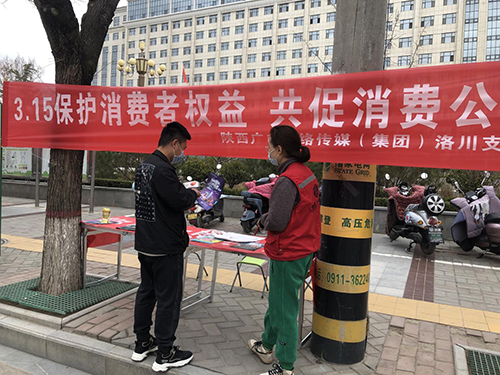 咸阳、渭南、铜川分公司,洛川、永寿、三原、彬州、延长、潼关、澄城支公司在营业厅、广场、小区设立网点,开展3.15保护消费者权益相关主题宣传活动。各单位通过悬挂宣传主题标语横幅、LED屏展示标语、发放宣传资料、现场宣传解答等形式,教育引导广大消费者提高维权意识,引导群众绿色消费、明白消费,为用户打造透明放心消费环境。