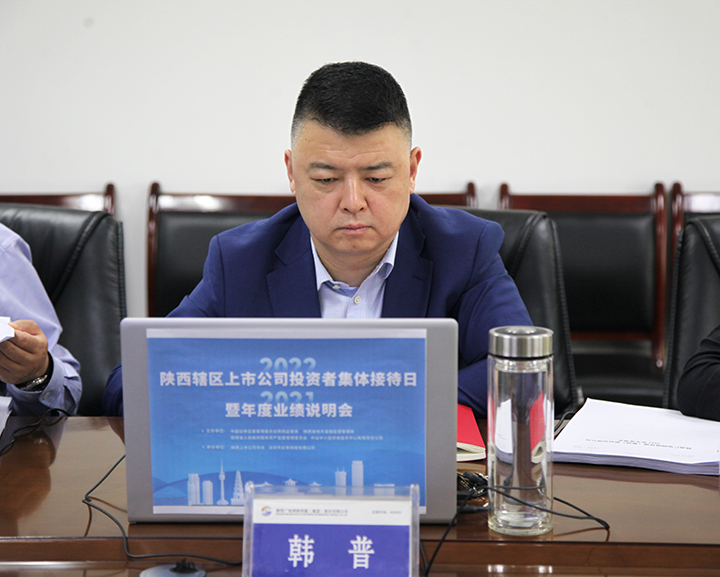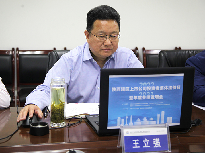 5月13日,“2022年陕西辖区上市公司投资者集体接待日暨2021年度业绩说明会”以线上线下相结合的形式在西安全景路演厅成功举行。会议由陕西证监局、陕西省地方金融监督管理局、陕西省国资委、中证中小投资者服务中心有限责任公司主办,陕西上市公司协会、深圳市全景网络有限公司承办。公司党委书记、董事长王立强,党委副书记、董事、总经理韩普,财务总监胡晓莱,董事会秘书杨莎及证券投资部、财务部相关人员通过线上方式参加活动,与陕西辖区65家上市公司同步联动。