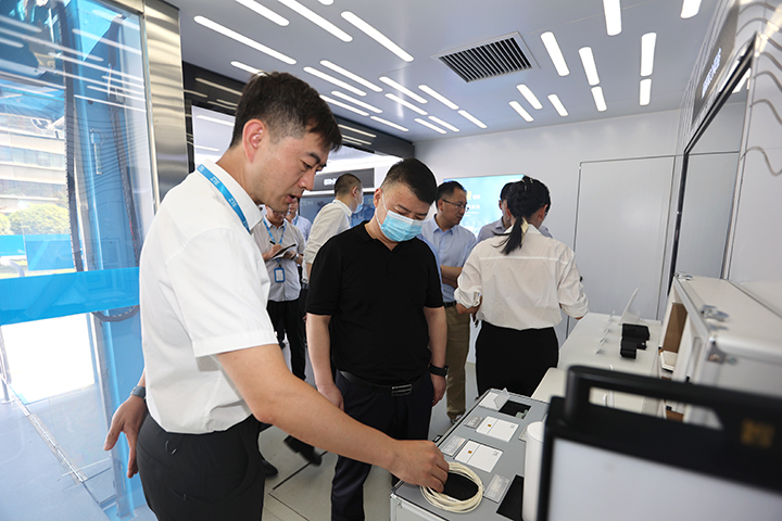 韩普总经理详细听取了技术人员对模块化数据中心、视频算力网络、5G+千兆建设、5G+工业互联网、核心网等场景应用介绍,并就广电网络相关应用进行了交流。