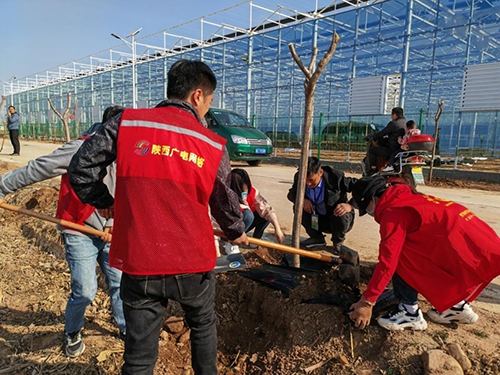 宁陕支公司组织员工到梁家庄村开展“植树节”绿化活动。经过一个多小时的辛勤劳动,共种植花椒树20余棵。