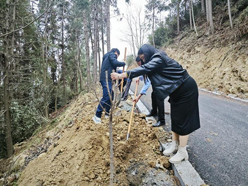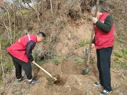 石泉支公司党员干部到包联的城关镇纸坊村开展义务植树活动,进一步提高了大家“植树造林,绿色环保,人人有责”的环保意识。