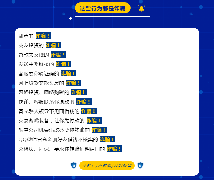 为进一步提高大家的安全防范意识,谨防电信网络诈骗,切实保障财产安全,九游官方网页版推出防范电信诈骗知识小课堂,呼吁大家时刻保持清醒头脑,提高警惕,理性应对诈骗情况,保护自身利益不被侵犯!