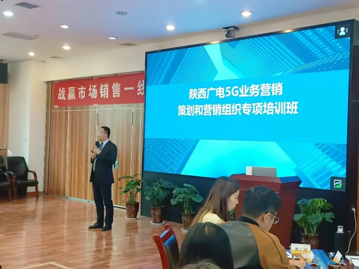 本次培训特邀西安集优咨询公司金牌讲师田旭围绕广电5G产品营销解析、宣传设计与品牌塑造、营销活动的“六定”准备、存量客户的5G价值引导及维系、5G业务四大场景化营销策划及组织等内容开展。培训进一步提升了学员销售思路及现场营销能力。参训人员学习热情高涨、互动积极、反响热烈。