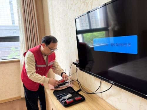 近日,宝鸡传媒公司高新运营公司在为商企客户玉兰酒店开展故障排查及维修服务工作中,仅用1个小时就实现了酒店电视、宽带业务恢复,完成故障排除,并对80间客房电视宽带信号逐一开展了测试,为酒店人员耐心讲解“开机即直播”功能设置,高效优质的服务赢得客户高度赞扬。