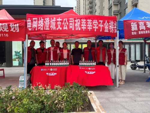 蒲城支公司在尧山中学考点外设立爱心服务站,向考生及家长发放矿泉水、纸巾等用品,送上清凉与关怀。支公司工作人员还积极向家长介绍广电业务,提供贴心服务。